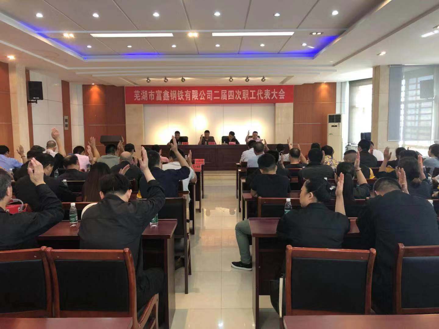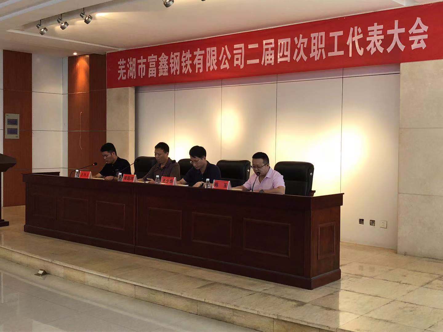 2019年8月6日上午9時蕪湖市富鑫鋼鐵有限公司第二屆第四次職工代表大會在雄壯的國歌聲中隆重開幕!受公司黨委書記王文奇同志委托,陳玉同志代表公司黨委對大會致辭!會上全體工會委員、職工代表精神飽滿,積極審議。并認真舉手表決,全票審議通過了公司2019版《員工手冊修訂草案》和工會主席王少華同志作的題為《有效提升工會服務意識 共譜和諧發(fā)展新篇章》工會工作報告。最后由公司領導吳國鴻同志致大會閉幕辭!此次大會回顧了2018年公司各部門全年的工作,并且號召全體員工在公司黨委的堅強領導下,統(tǒng)一思想,堅定信心,攻堅克難,開拓創(chuàng)新,全力以赴,為全面實現(xiàn)2019年公司生產發(fā)展目標而努力奮斗!