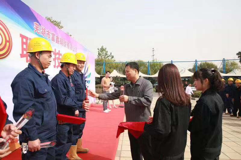2019年10月29日上午,天高云淡,風(fēng)和日麗,蕪湖市富鑫鋼鐵有限公司廠區(qū)里氣氛緊張而激烈,首屆“富鑫杯”職工技能大賽如火如茶地全面開(kāi)展。此次大賽得到繁昌縣總工會(huì)、新港鎮(zhèn)總工會(huì)和公司領(lǐng)導(dǎo)的重視和大力支持,比賽過(guò)程中,縣總會(huì)黨組成員、經(jīng)審委徐飛主任帶隊(duì),新港鎮(zhèn)總工會(huì)、公司黨委、工委、公司各部門(mén)負(fù)責(zé)人、一線職工共計(jì)200人到大賽現(xiàn)場(chǎng)觀摩指導(dǎo)。公司近20名參賽選手經(jīng)過(guò)層層篩選和精心準(zhǔn)備后,參加現(xiàn)場(chǎng)實(shí)操競(jìng)技。賽場(chǎng)選手精神飽滿,各顯身手。裁判員一絲不茍、嚴(yán)格評(píng)判。整場(chǎng)比賽既緊張又有趣。經(jīng)過(guò)激烈的角逐,6名參賽選手獲得了獎(jiǎng)項(xiàng),其中榮獲大賽一等獎(jiǎng)選手李文明同志被縣總工會(huì)授予“五一勞動(dòng)獎(jiǎng)?wù)隆睒s譽(yù)稱號(hào)。公司通過(guò)舉辦此次職工技能大賽,積極引導(dǎo)了廣大職工學(xué)習(xí)技術(shù)的熱情,提升了專(zhuān)業(yè)技能水平;爭(zhēng)一流、創(chuàng)效益、作貢獻(xiàn)、立足崗位比學(xué)趕超,更好地凝聚廣大職工的智慧和力量,為和諧富鑫奠定了堅(jiān)實(shí)的基礎(chǔ),為實(shí)現(xiàn)公司2019生產(chǎn)目標(biāo)和富鑫鋼鐵長(zhǎng)遠(yuǎn)發(fā)展建功立業(yè)。
