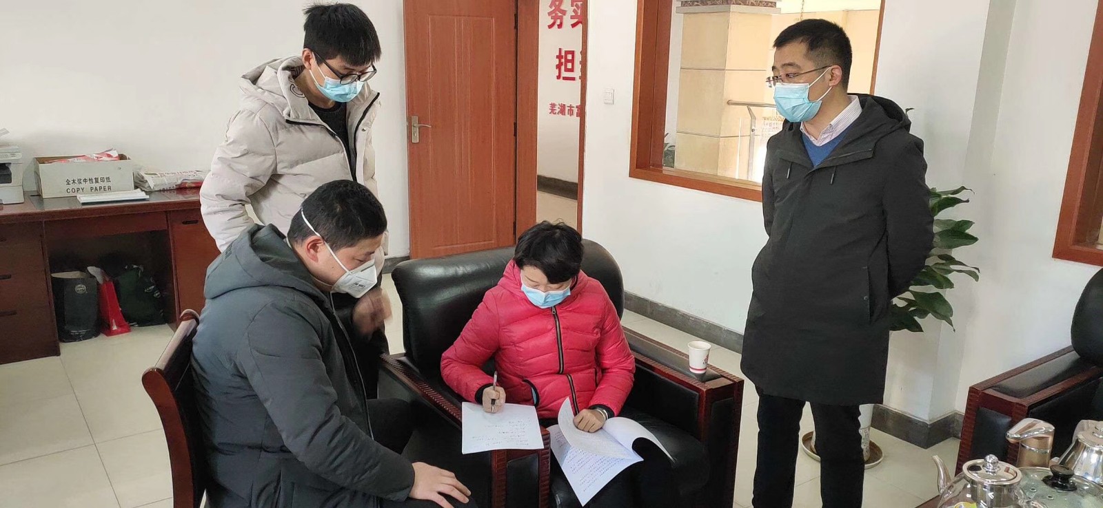 2月18日上午,新港鎮(zhèn)黨委書記張瑩、鎮(zhèn)黨委組織委員汪鵬一行蒞臨公司,對貫徹落實繁昌縣委關(guān)于要求疫情防控期間突出重點、統(tǒng)籌兼顧,分類指導(dǎo)、分區(qū)施策,切實把疫情防控和企業(yè)復(fù)工復(fù)產(chǎn)等各項工作抓實、抓細(xì)、抓落地,努力實現(xiàn)今年全縣經(jīng)濟(jì)社會發(fā)展目標(biāo)任務(wù)的總要求對公司進(jìn)行復(fù)工預(yù)案制定現(xiàn)場指導(dǎo)。期間張瑩一行還深入車間生產(chǎn)一線,仔細(xì)詢問了疫情期間公司員工的生產(chǎn)防護(hù)及生活保障等情況,并對富鑫作為繁昌民營大企,在疫情嚴(yán)峻的形勢下,積極響應(yīng)各級黨委號召,聽黨指揮,把不忘初心,牢記使命教育成果落到實處提出表揚(yáng)。