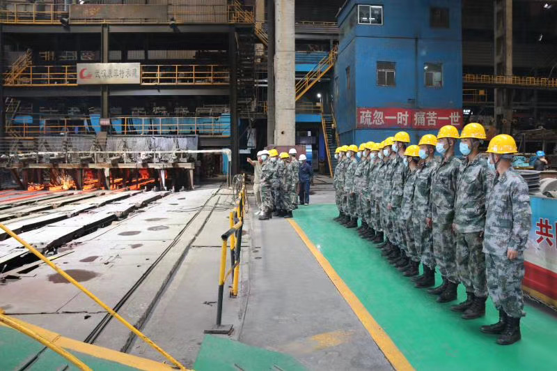 5月20日上午,陽光明媚,在這個(gè)愛意滿滿的日子里,“最可愛的人”駐繁部隊(duì)官兵及近50名新入伍戰(zhàn)士一行走進(jìn)富鑫公司觀摩煉鐵、煉鋼生產(chǎn)流程?;顒?dòng)中,全體官兵軍容嚴(yán)整,步伐一致,體現(xiàn)了新時(shí)代的革命軍人斗志昂揚(yáng)的精神面貌?;顒?dòng)結(jié)束后,該部隊(duì)政委表示,此次觀摩活動(dòng),十分有意義,感受深刻,富鑫鋼鐵的一線職工們給新入伍的同志上了一堂生動(dòng)形象的國(guó)防教育課。通過現(xiàn)場(chǎng)觀看煉鐵、煉鋼的生產(chǎn)流程,教育全體官兵,只有在革命的艱難困苦中戰(zhàn)勝敵人,在生活的巨大壓力中戰(zhàn)勝自己,只有把自己的追求和祖國(guó)、人民的利益聯(lián)系在一起的時(shí)候,才會(huì)創(chuàng)造奇跡,才會(huì)成長(zhǎng)成為鋼鐵戰(zhàn)士,牢固樹立為革命獻(xiàn)身,鋼鐵般的意志和頑強(qiáng)奮斗的品質(zhì)。